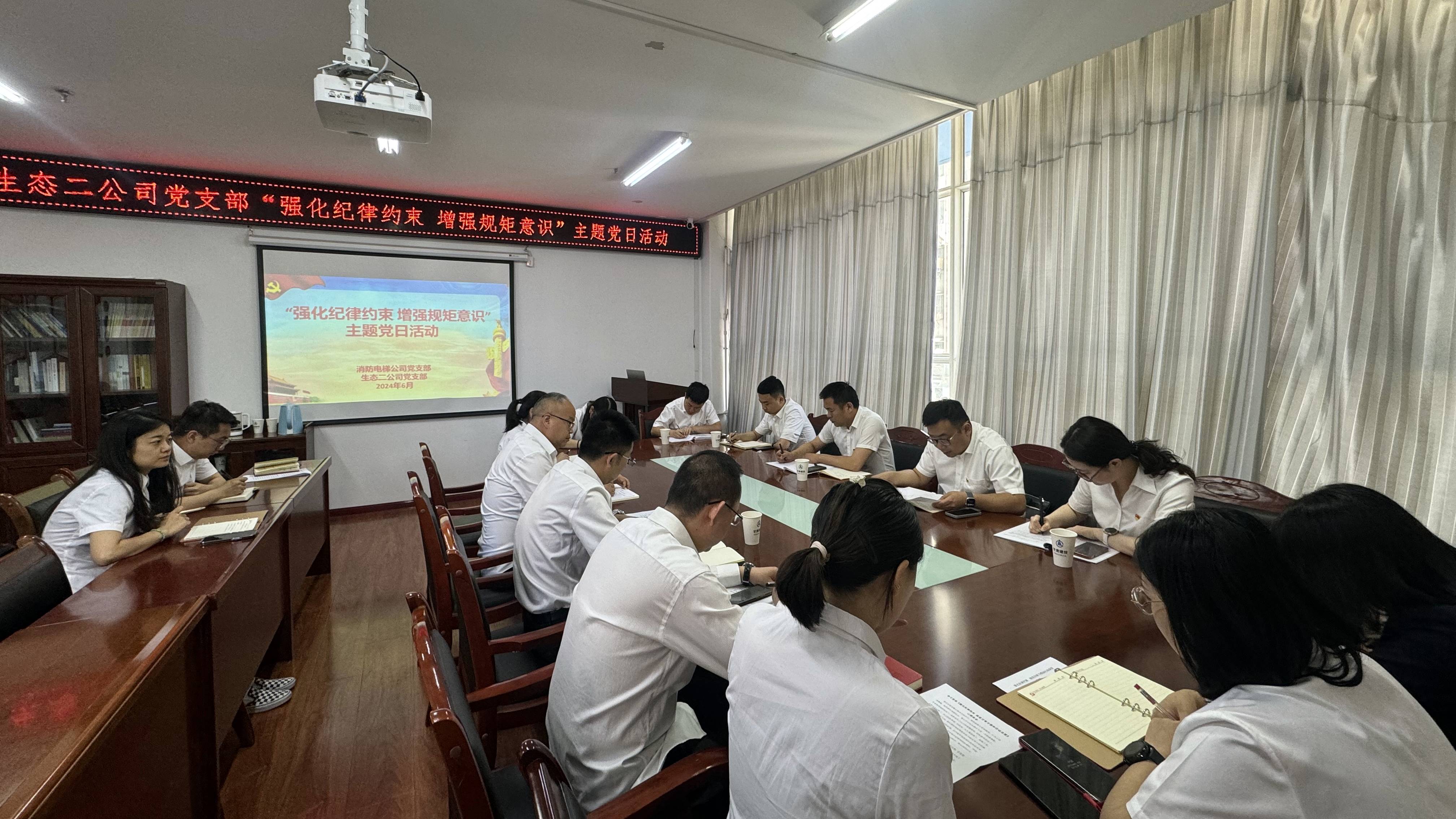 為深入學(xué)習(xí)貫徹習(xí)近平總書(shū)記關(guān)于黨紀(jì)學(xué)習(xí)教育的重要講話和重要指示精神,加強(qiáng)黨的紀(jì)律建設(shè)、推動(dòng)全面從嚴(yán)治黨向縱深發(fā)展,進(jìn)一步將黨性教育融入日常管理監(jiān)督,強(qiáng)化黨員紀(jì)律意識(shí),提高黨性修養(yǎng),筑牢拒腐防變思想防線。6月5日,生態(tài)二公司黨支部聯(lián)合消防電梯公司黨支部共同開(kāi)展了“強(qiáng)化紀(jì)律約束 增強(qiáng)規(guī)矩意識(shí)”主題黨日結(jié)對(duì)共建活動(dòng),兩家支部黨員參加活動(dòng)。